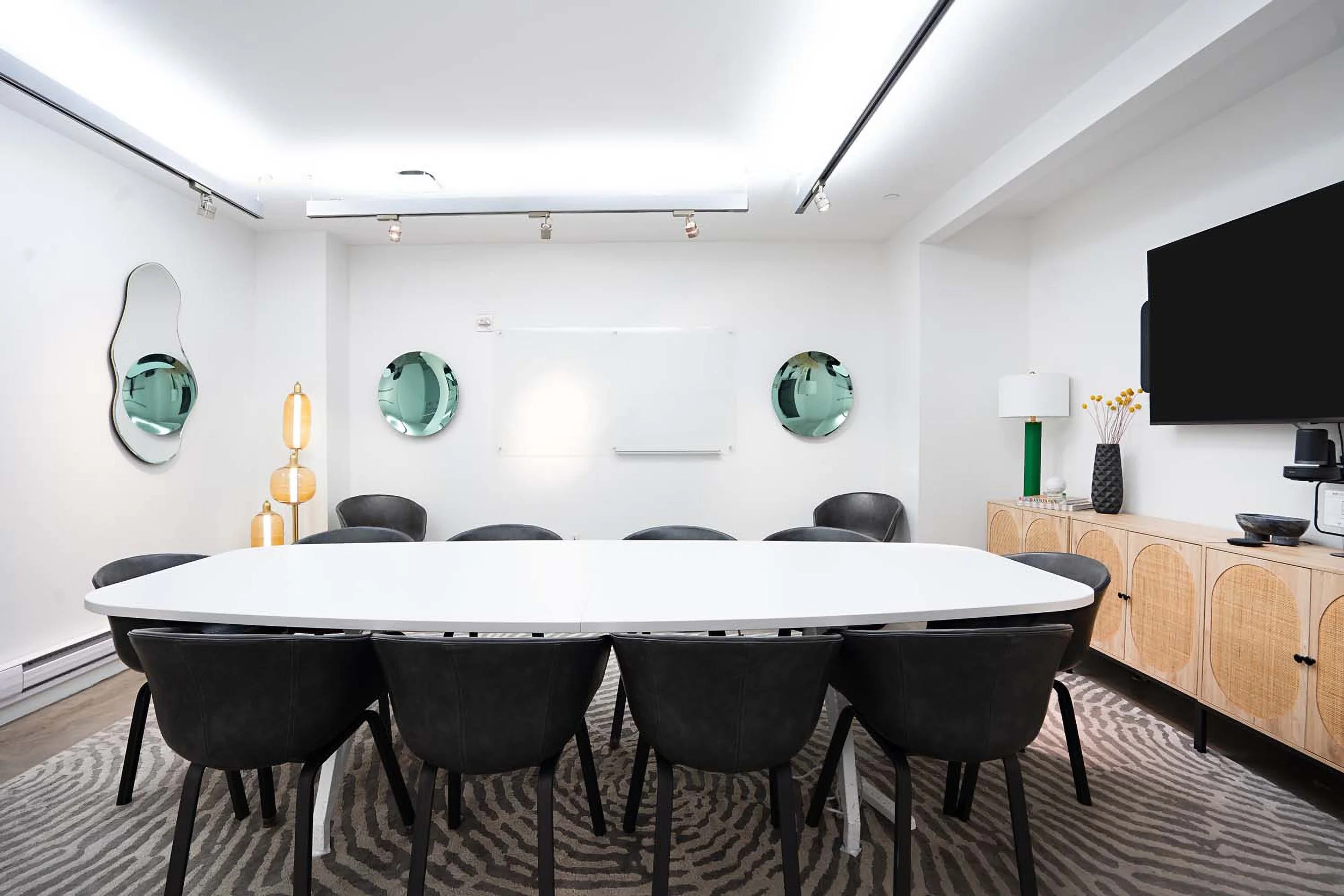 Tech equipped private meeting rooms with video conferencing for your next client or boardroom meeting, team offsite, press preview, interviews, training, presentation, workshop, brainstorm, launch event, market week & more.