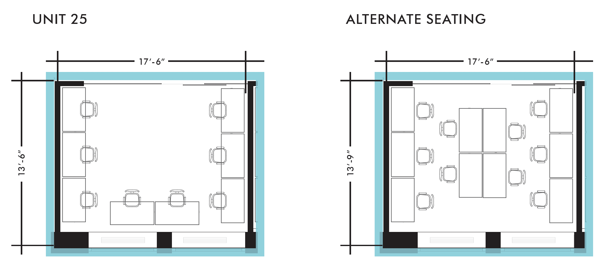 Private office with direct windows for up to ten people. Furniture provided at no cost. Move in ready.